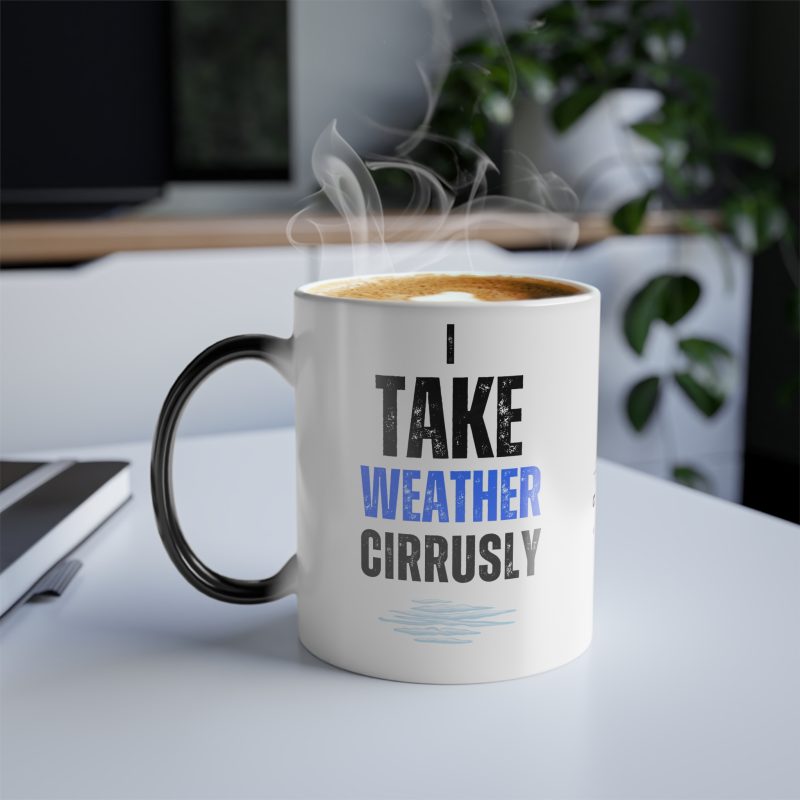 The I Take Weather Cirrusly Color Morphing Mug brings a fun and whimsical vibe to your morning routine. Perfect for weather enthusiasts and those who appreciate a good pun, this mug is a great gift for birthdays, holidays, or just because.