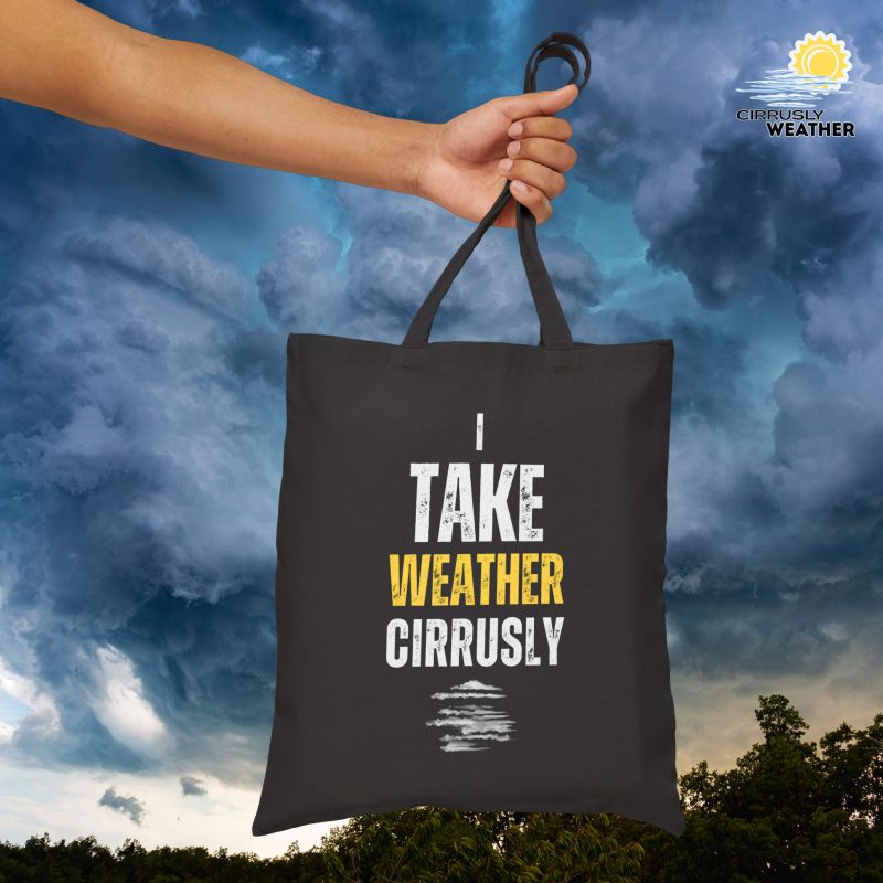 The I Take Weather Cirrusly Tote Bag is the ideal carry-all for weather enthusiasts!ย Crafted from 100% cotton canvas, this bag exudes strength and durability, making it your ideal companion for daily errands, trips to the beach, or weekend adventures.