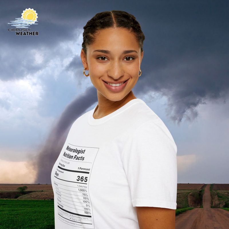 What is a weatherman made of? Lots of calculus, coffee, and passion. The Meteorologist Nutrition Facts Unisex T-Shirt will get a laugh from the meteorologist in your life, and lays it all out in hilarious detail. No doubt they will agree with our completely scientific method of determining their true composition (we kid).