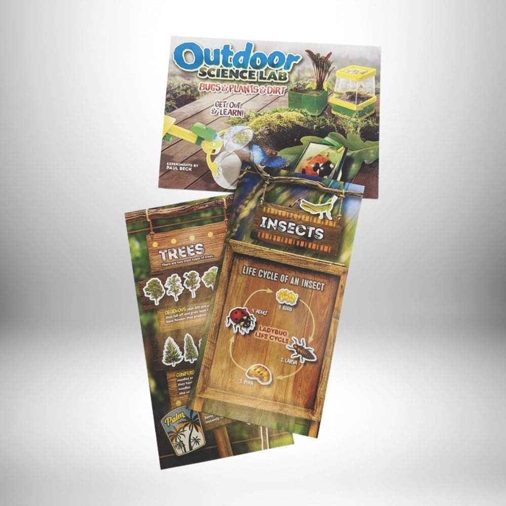 A 32-page illustrated book features experiments related to soil, bugs, rocks, plants, and water. Kids will discover how to test the pH of soil and rainwater, observe insect behavior under UV light, classify plants, and identify backyard animal tracks. Theyโll also learn how plants breathe, why leaves change color, the importance of trees to life on Earth, and much more.