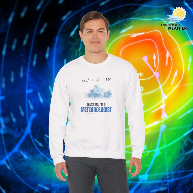 Meteorologists might spend long hours looking over data and weather models to nail that forecast. If that’s you (or somebody you know), this winter stay cozy and stylish with our Trust Me I’m a Meteorologist Crewneck Sweatshirt. Its clean-cut style easily blends into any casual wardrobe, making it the go-to choice for everyday wear. Ideal for meteorology enthusiasts, this garment is perfect for friends, family, and colleagues who appreciate the art of weather forecasting.